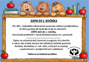 Zápis do 1. ročníka ZŠ s MŠ J. Vojtaššáka Zákamenné