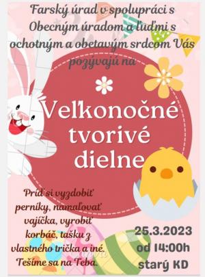 Farský úrad v spolupráci s Obecným úradom a ľuďmi s ochotným srdcom Vás pozývajú na Veľkonočné tvorivé dielne.