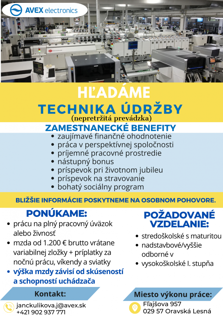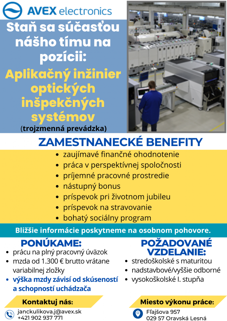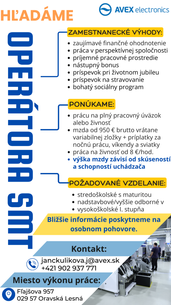 AVEX electronics Oravská Lesná ponúka prácu.