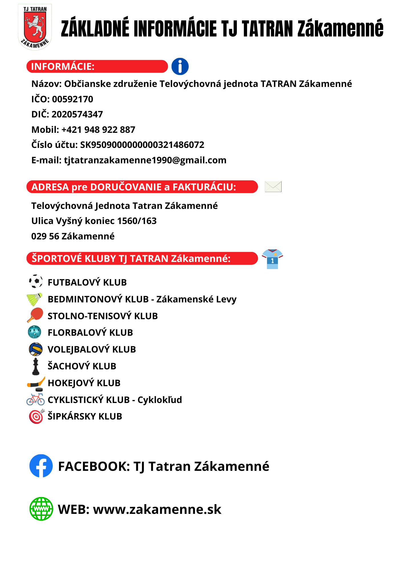Základné informácie TJ Tatran Zákamenné