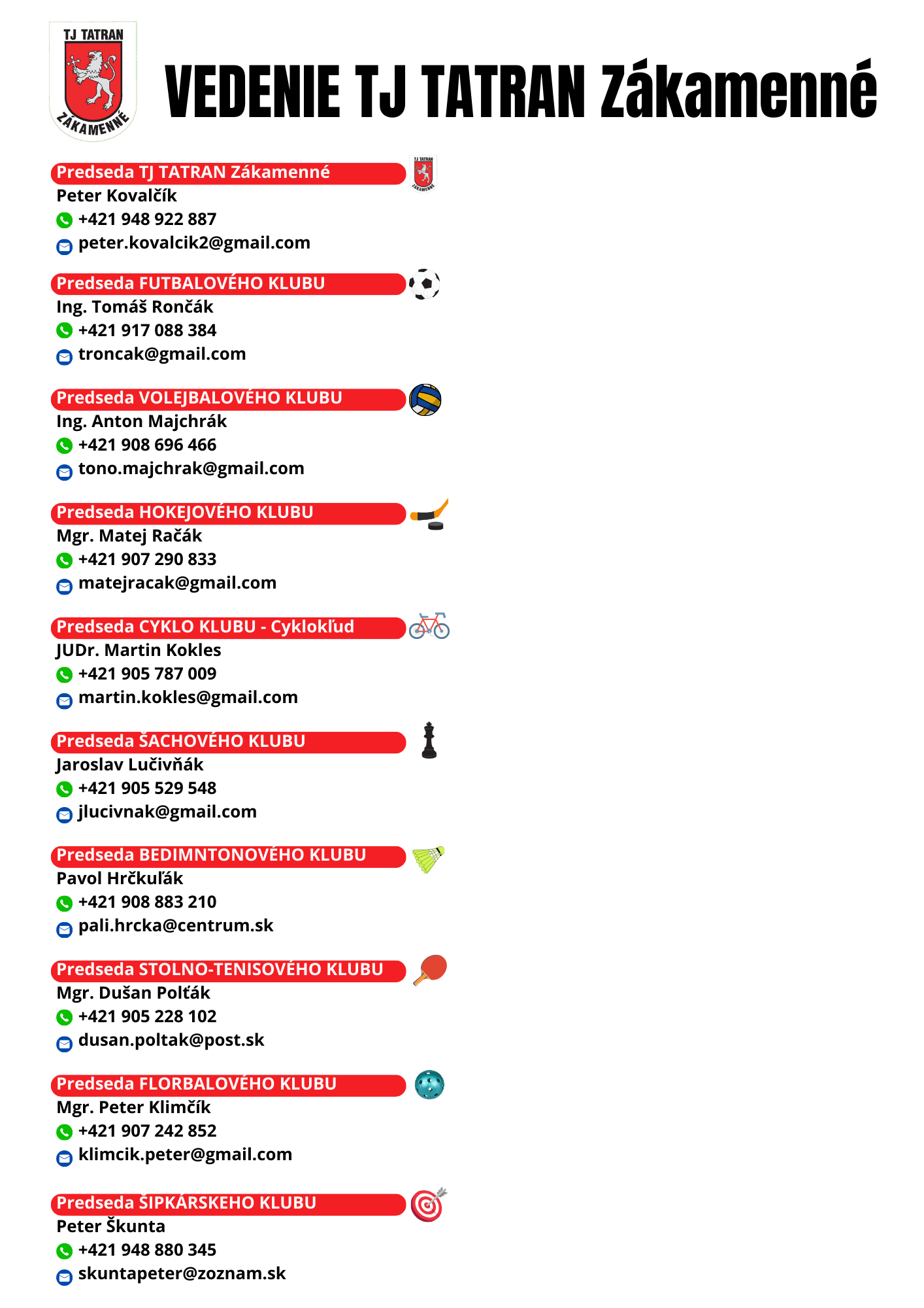Vedenie TJ Tatran Zákamenné