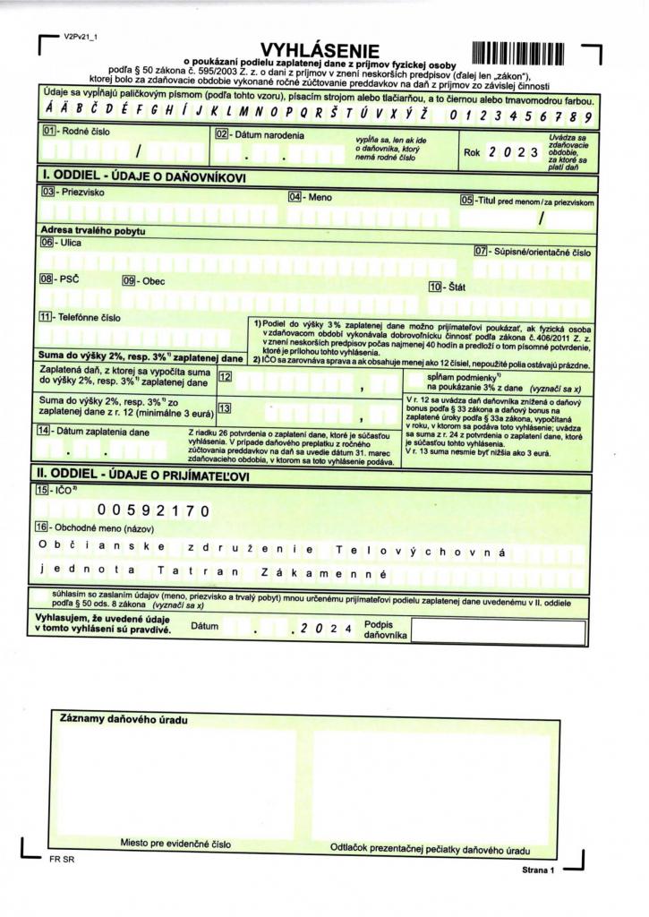 Darujte 2% z daní organizácii TJ TATRAN Zákamenné Typ: PDF dokument, Veľkosť: 143.29 kB